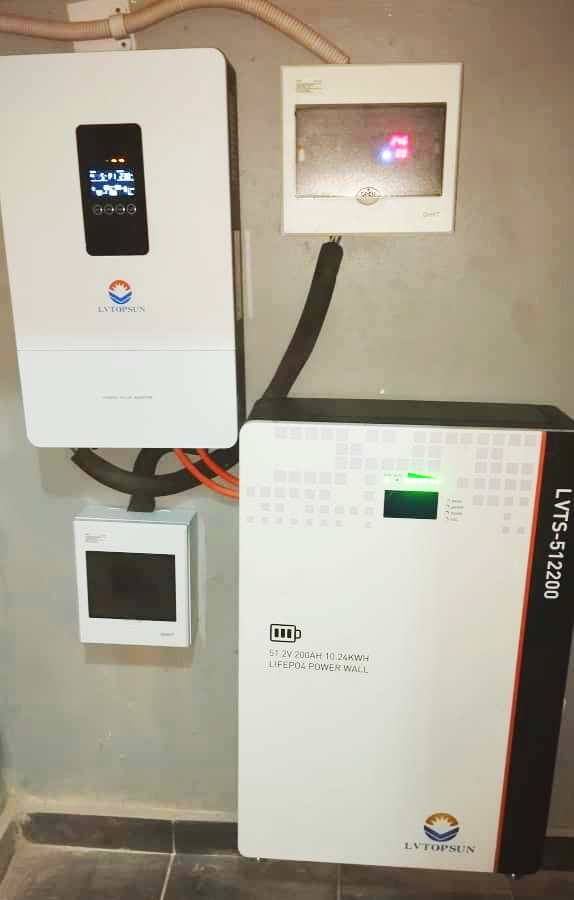 This 5kVA inverter system paired with a 5kWh lithium iron phosphate (LiFePO₄) battery is a practical solution for homes and small offices that need reliable backup power for essential daily use. It is well-suited for powering lighting, fans, TVs, inverter fridge, routers, laptops, and other low-to-medium energy appliances.